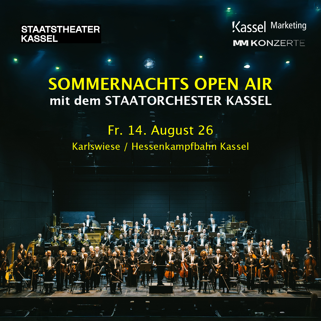 Unter der Leitung von Generalmusikdirektor Ainārs Rubiķis präsentiert das Staatsorchester Kassel populäre Melodien aus der Welt der Klassik und lädt zu einem stimmungsvollen Sommerabend unter freiem Himmel ein. Auf dem Programm stehen Werke der leichten Klassik in klassisch-romantischer Orchesterbesetzung – ein abwechslungsreicher Konzertabend voller musikalischer Höhepunkte und sommerlicher Atmosphäre.